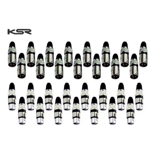 Kit 30 Plug Xlr Macho E Femea Canon Ksr Pro Microfone Dmx