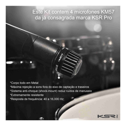 Kit de 5 Microfones para bateria KM57 percussão KSR Pro KM5